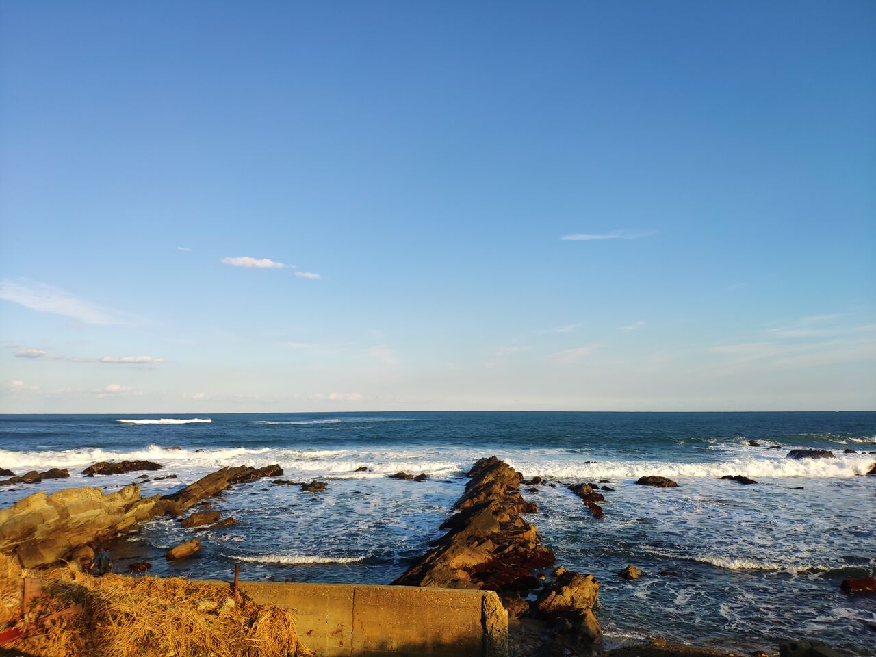 海を見ながら南下する。この冬の時期には少し日暮れが近づいた色も